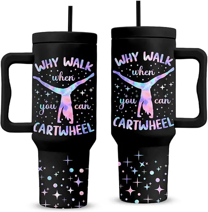 Every gymnast needs to stay hydrated, and this is a great way to do it! Grab this cute gymnastics stainless cup today, perfect for gymnasts! It holds 40 ounces of liquid, and is a great deal for Prime Big Deal Days!